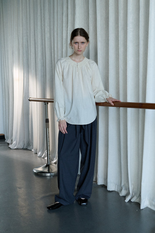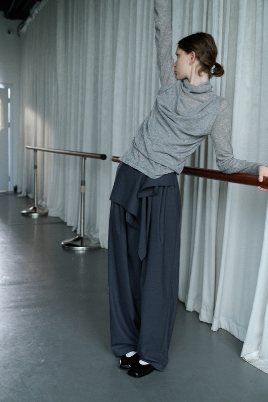 Fabric extends like skin, lines move with the body, embodying life itself. On Pina Bausch’s stage, movement draws from life—LEONORA YANG 2024AW stitches echo the everyday.