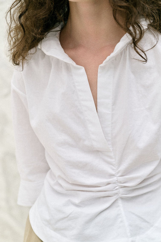 Deep V-Neck Asymmetrical Design Versatile 3/4 Sleeve Cropped Shirt