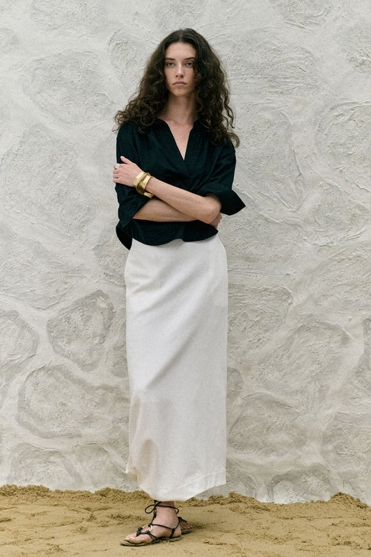 Leonora Yang 24SS emerges from the hues of Egypt, where linen and silk are woven into abstract expression. Tropical spaciousness, lightness, and minimalism echo the enduring aesthetic of Leonora Yang.