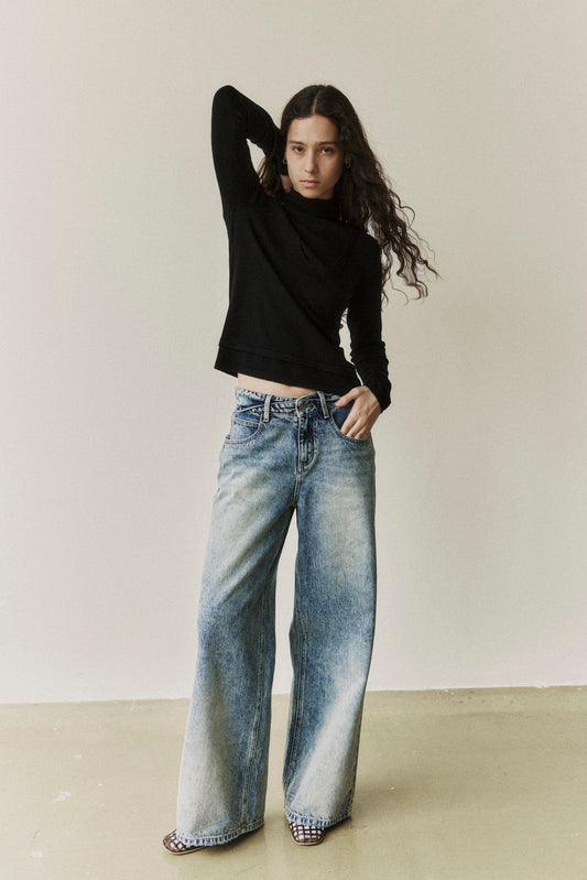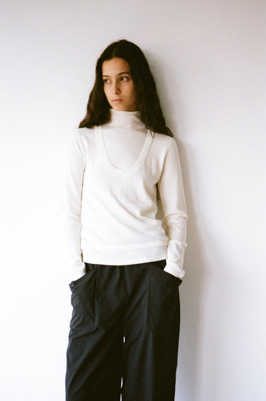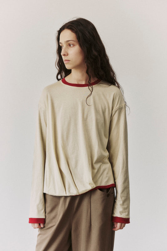 Reversible Double-Layer Contrast Knit Long-Sleeve Tee
