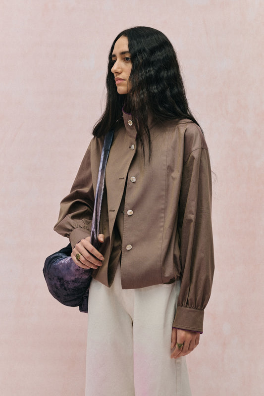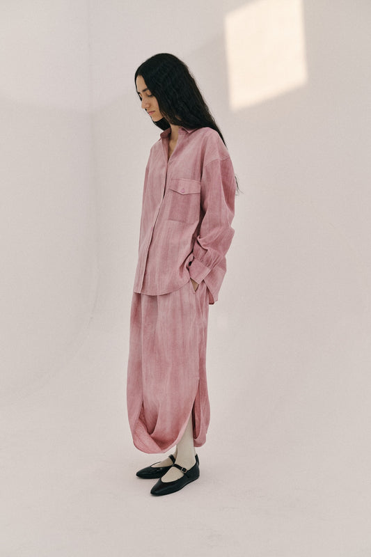 The palette draws inspiration from the film The Grand Budapest Hotel, evoking a sensory way of perceiving life’s many layers — embracing both its lightness and its weight, and savoring its bittersweet nuances. Color, form, and folds serve as philosophical metaphors. With both vintage and modern aesthetics, it offers a beauty that transcends time and gender.