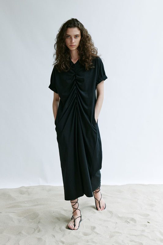 V-neck Ribbed Cuff Mid-length Knit Dress