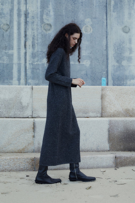 Merino Wool Heart-Collar Long Knit Sweater Dress