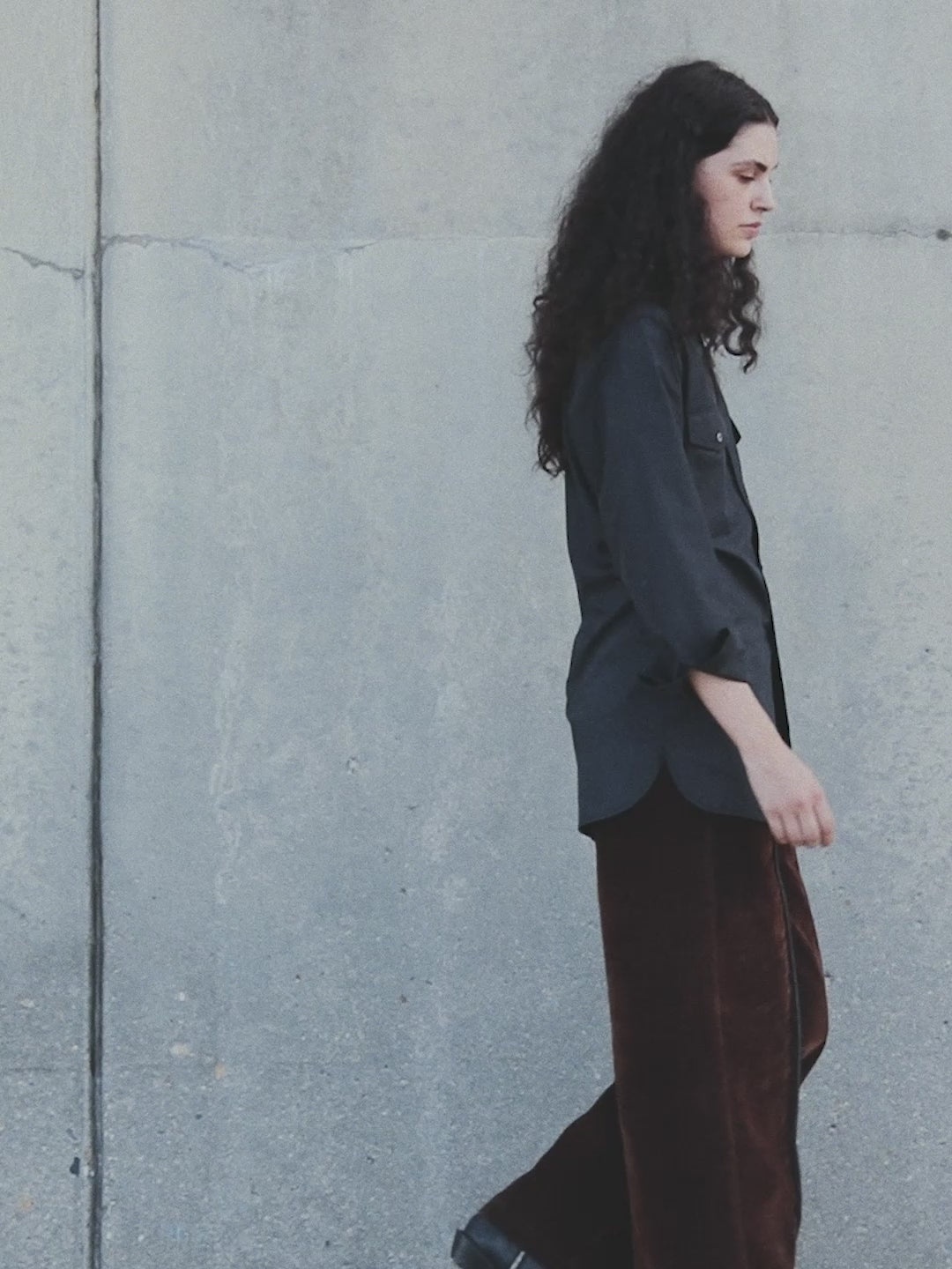 - Baseball-style curved hem that adds structure and movement while walking.