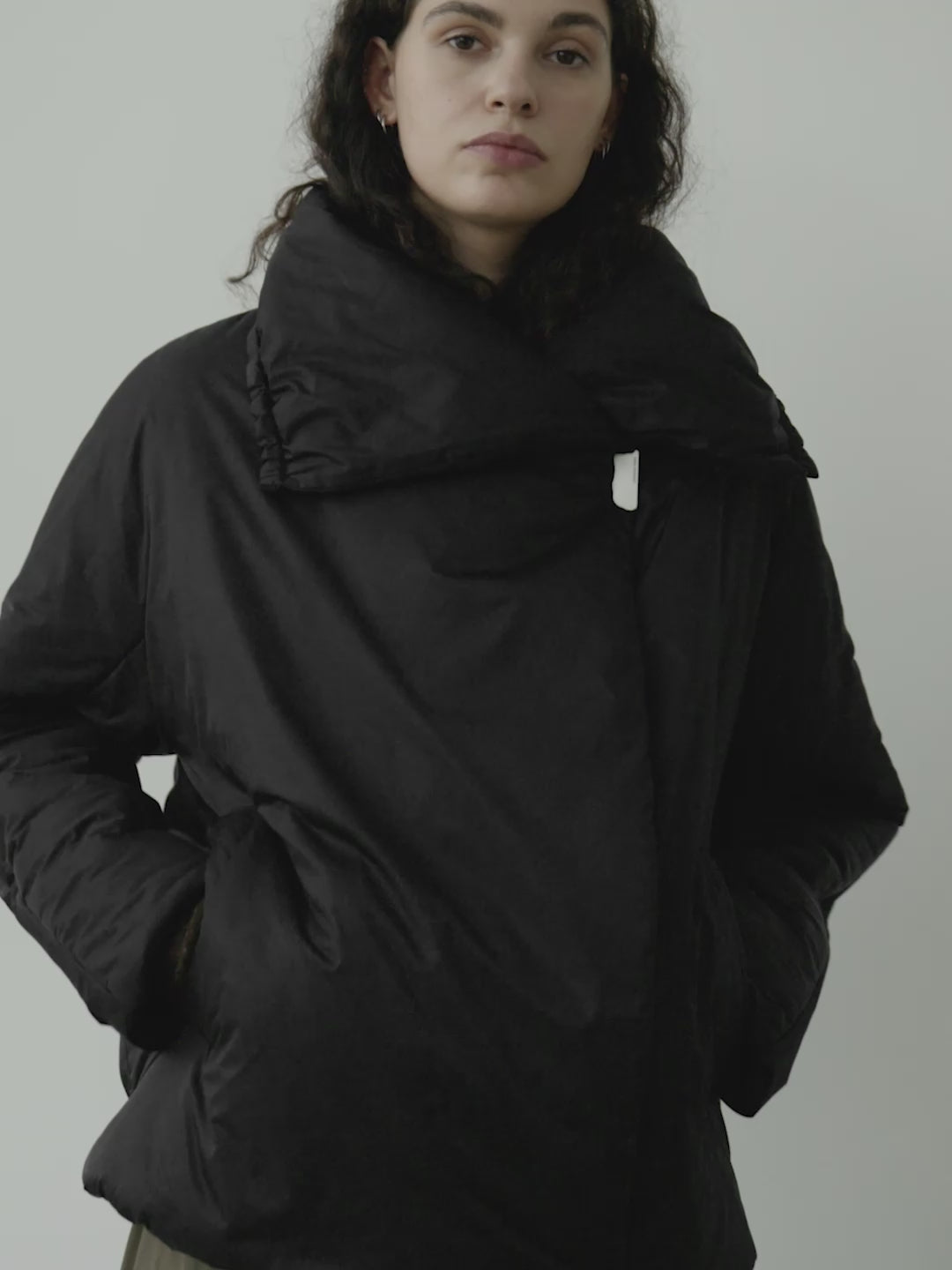 - Neutral, relaxed short silhouette that feels lightweight while enhancing body proportions. Accommodates various layering thicknesses without feeling heavy.