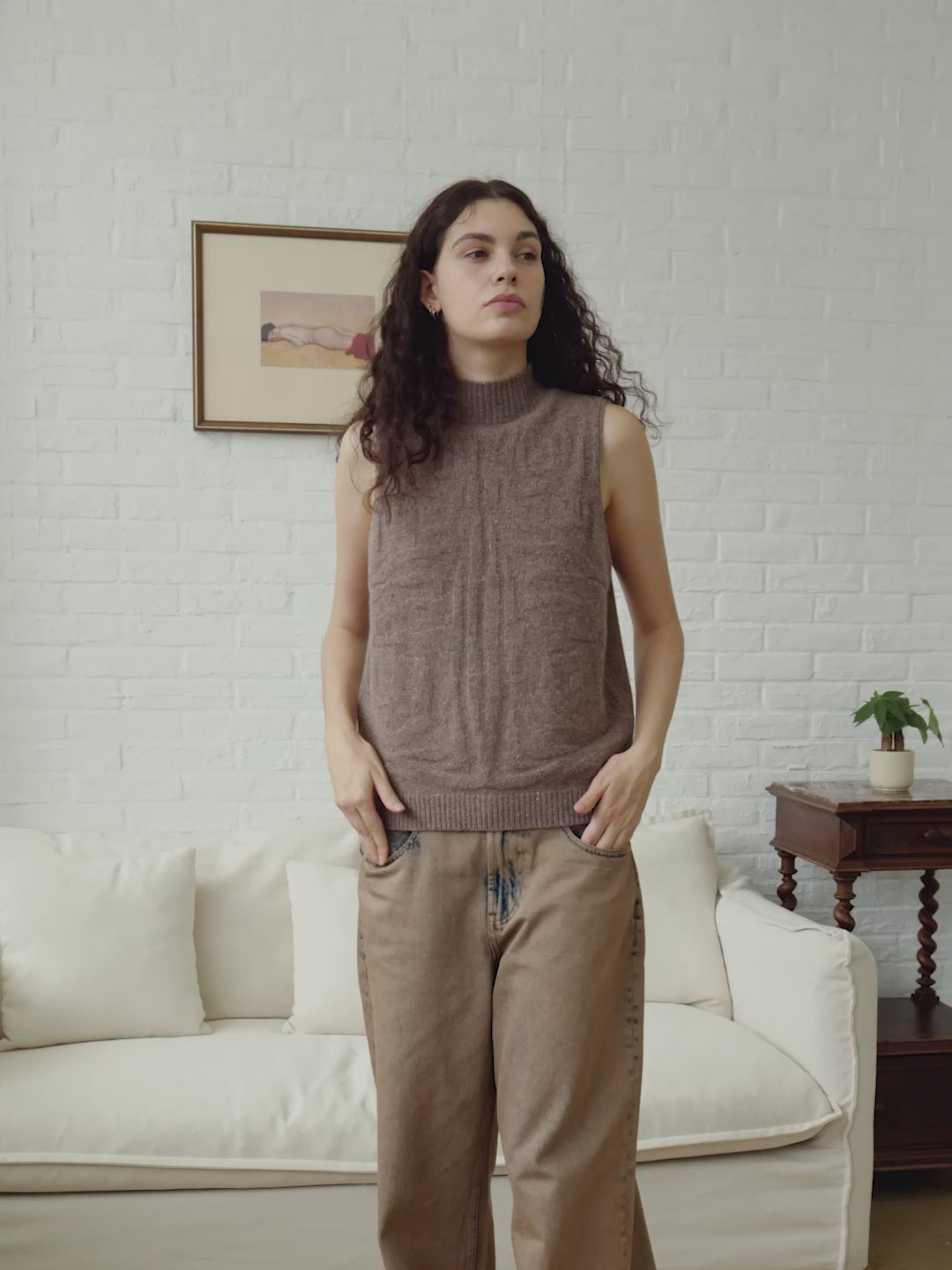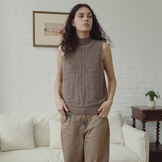 Tiger-Cat Textured High-Neck Sleeveless Knit Top
